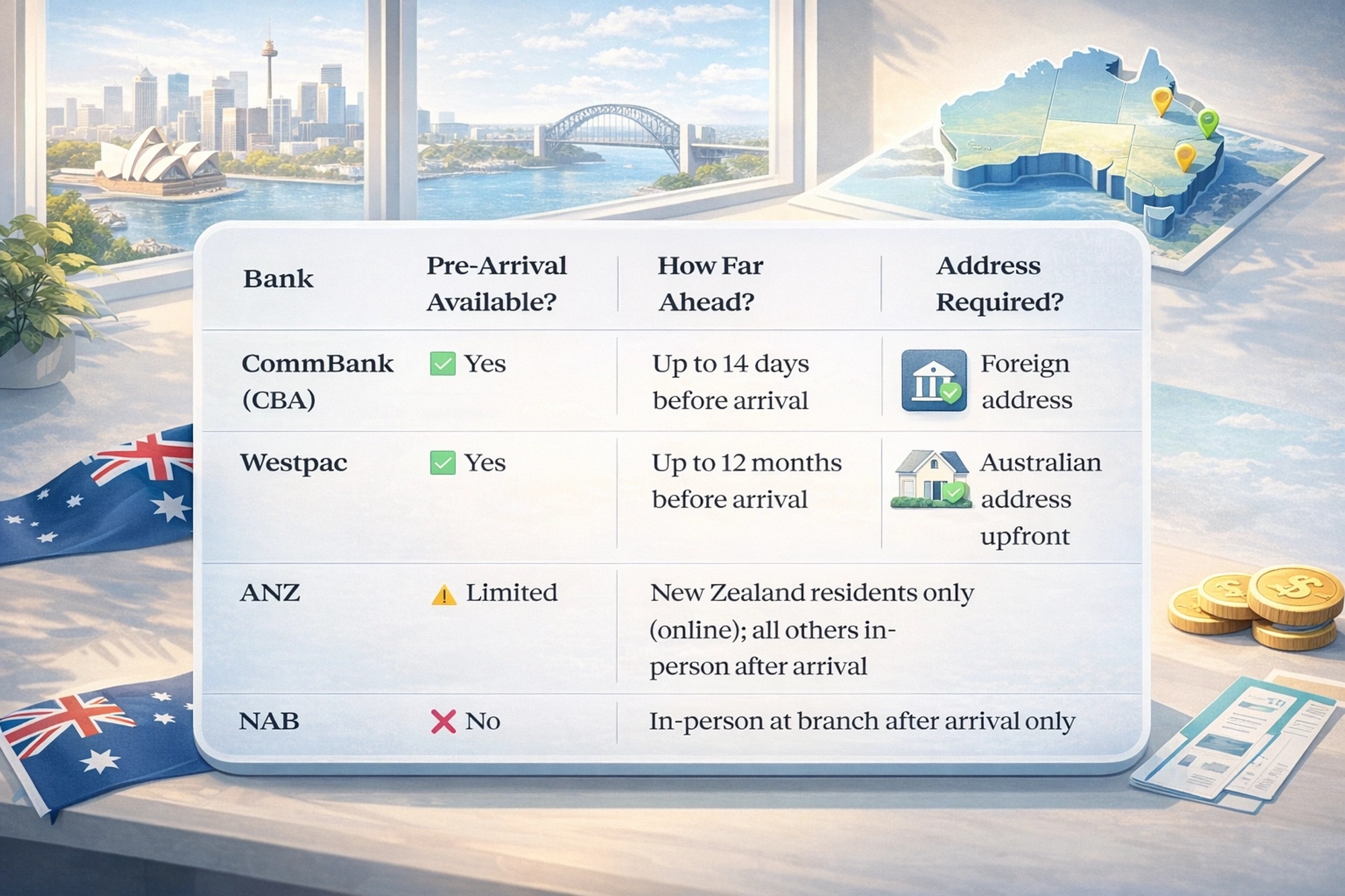 The good news: Australia's major banks are well-prepared for migrants, and several allow you to begin the process before you even board your flight. The less-good news: there are deadlines, deposit restrictions, and identity rules that catch a lot of new arrivals off guard and if you miss the key window, getting full account access can take weeks longer than it needs to.